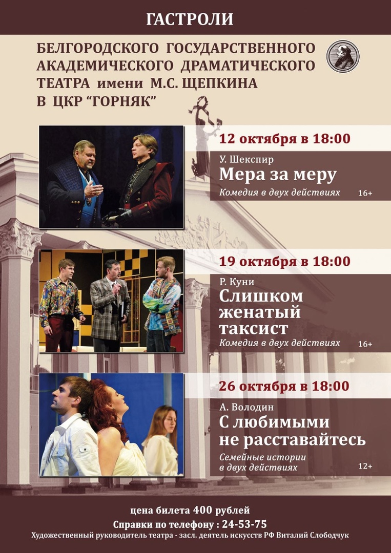 Дорогие друзья! Приглашаем вас на спектакли Белгородского Государственного академического драматического театра им. М.С. Щепкина!