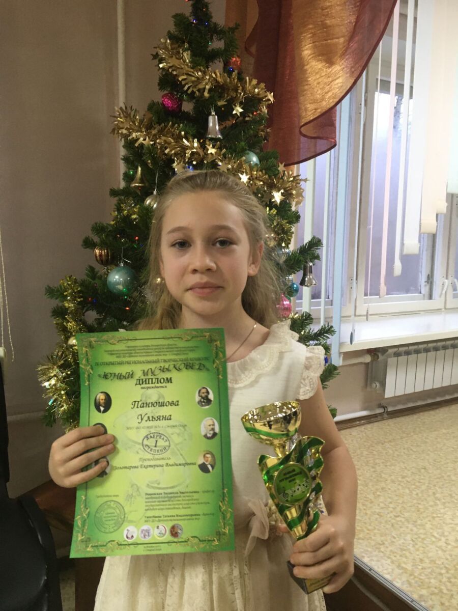 В Детской музыкальной школе №4 состоялось награждение победителей Открытого регионального конкурса «Юный музыковед». Поздравляем лауреата 1 степени Панюшову Ульяну и её преподавателя Е.В. Золотарёву с заслуженной победой!!! Вы молодцы! Желаем новых творческих достижений и побед!