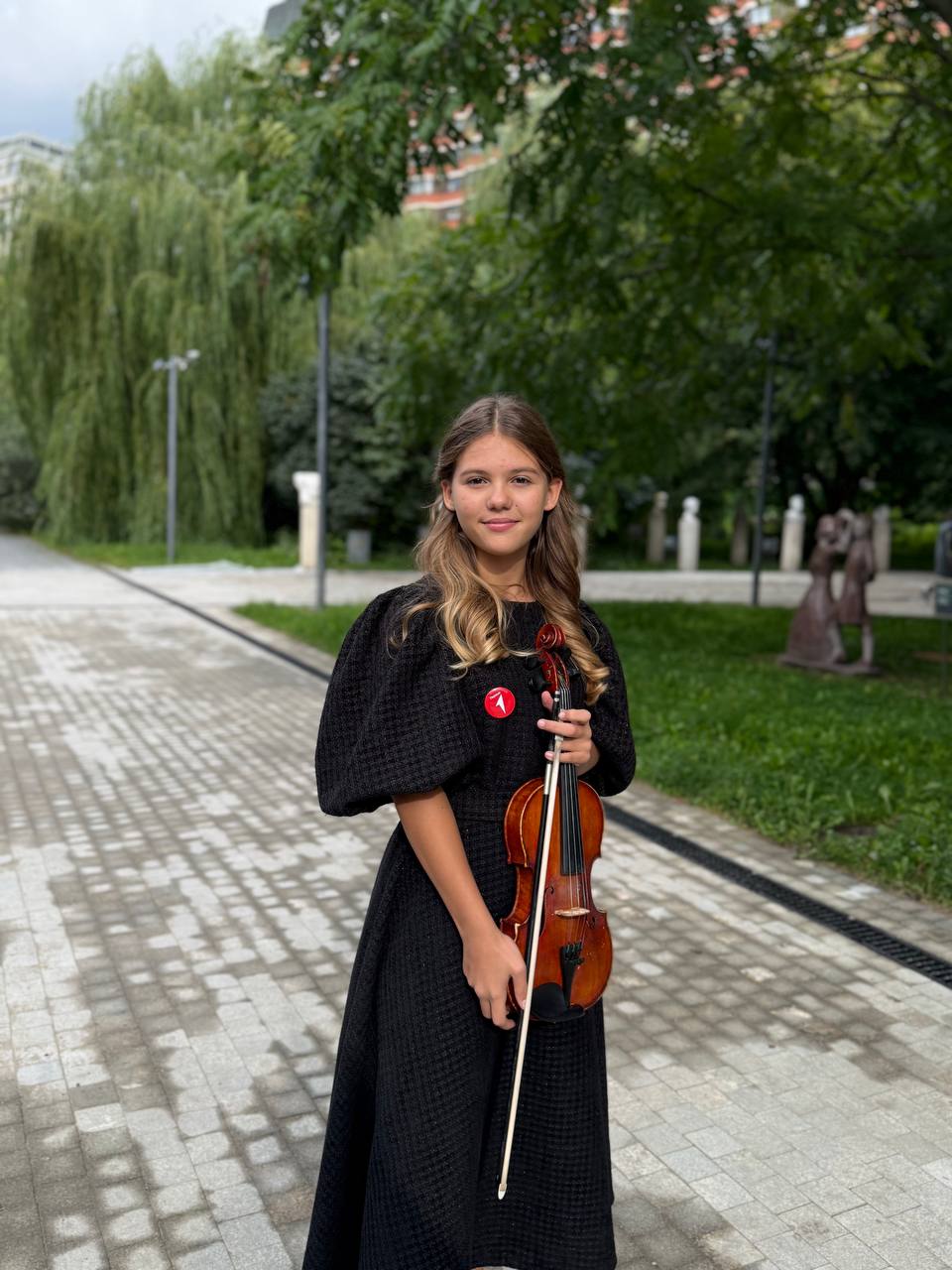 В оркестре «Первых» принимают участие юные артисты из 22 регионов нашей страны, и что особенно приятно, что среди этих участников ученица нашей школы по классу скрипки Милана Маенкова (класс преподавателя Скибицкой Елены Александровны).