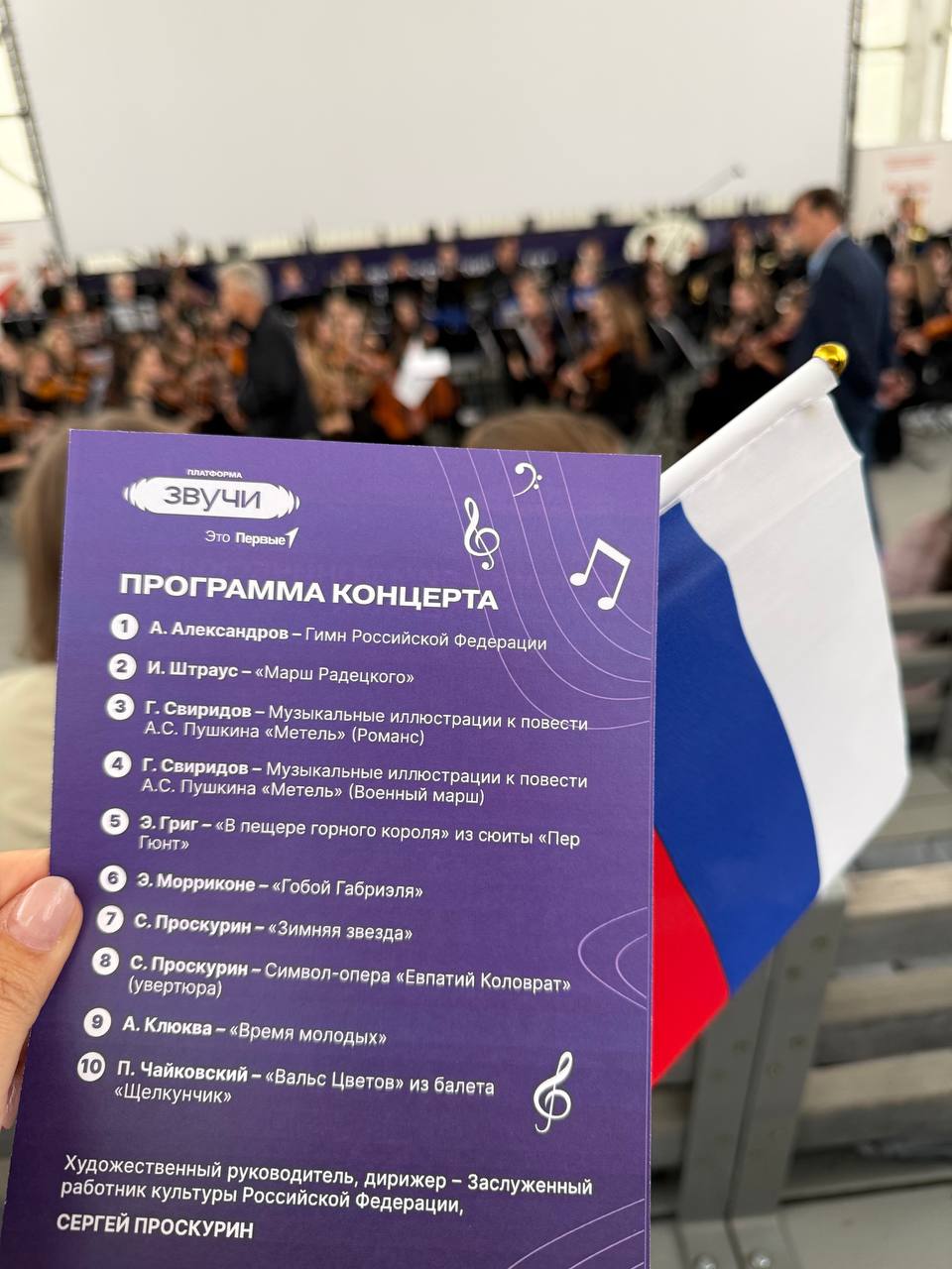 Оркестр выступал под руководством Заслуженного работника культуры РФ Сергея Проскурина. Для слушателей прозвучала музыка великих композиторов, таких как А. Александров, И. Штраус, Г. Свиридов, Э. Григ, Э. Морриконе, С. Проскурин, П. Чайковский, А. Клюква.
