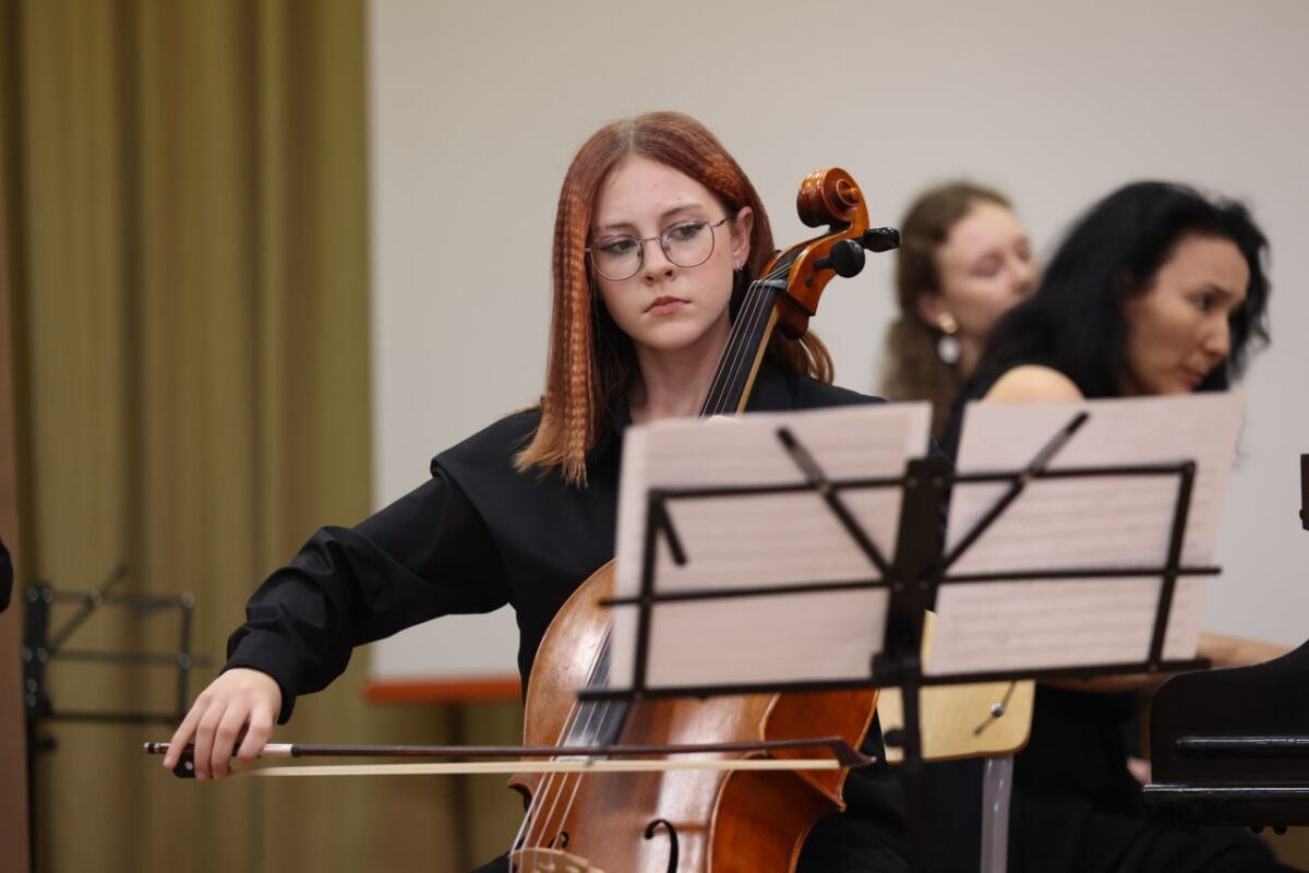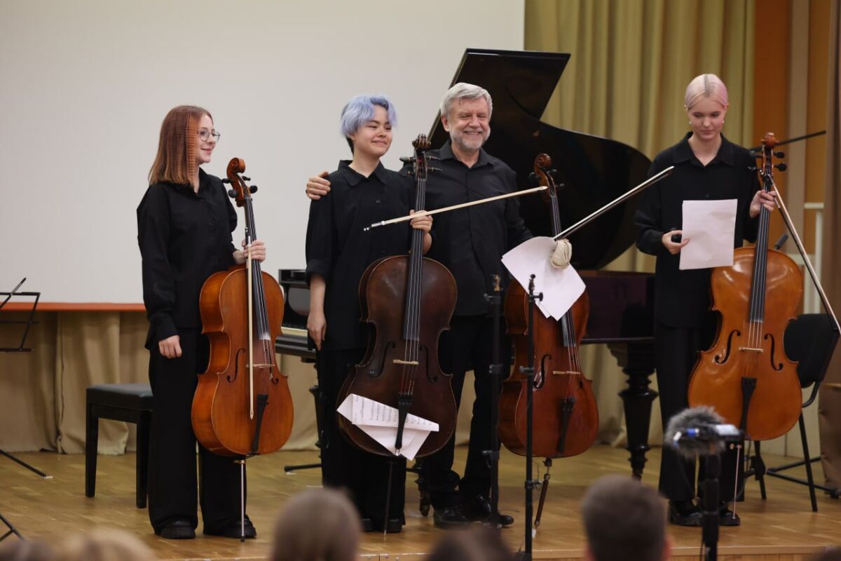 На заключительном концерте выступили талантливые дети из разных регионов России. Среди них были и наши виолончелисты. На исторической сцене наши обучающиеся выступили в составе камерного оркестра участников школы под руководством Леонида Лундстрема, исполнив 3 и 4 части «Серенады» для струнного оркестра П.И. Чайковского, а так же в составе барочного оркестра исполнили «Фолию» Ф.С. Джеминиани.